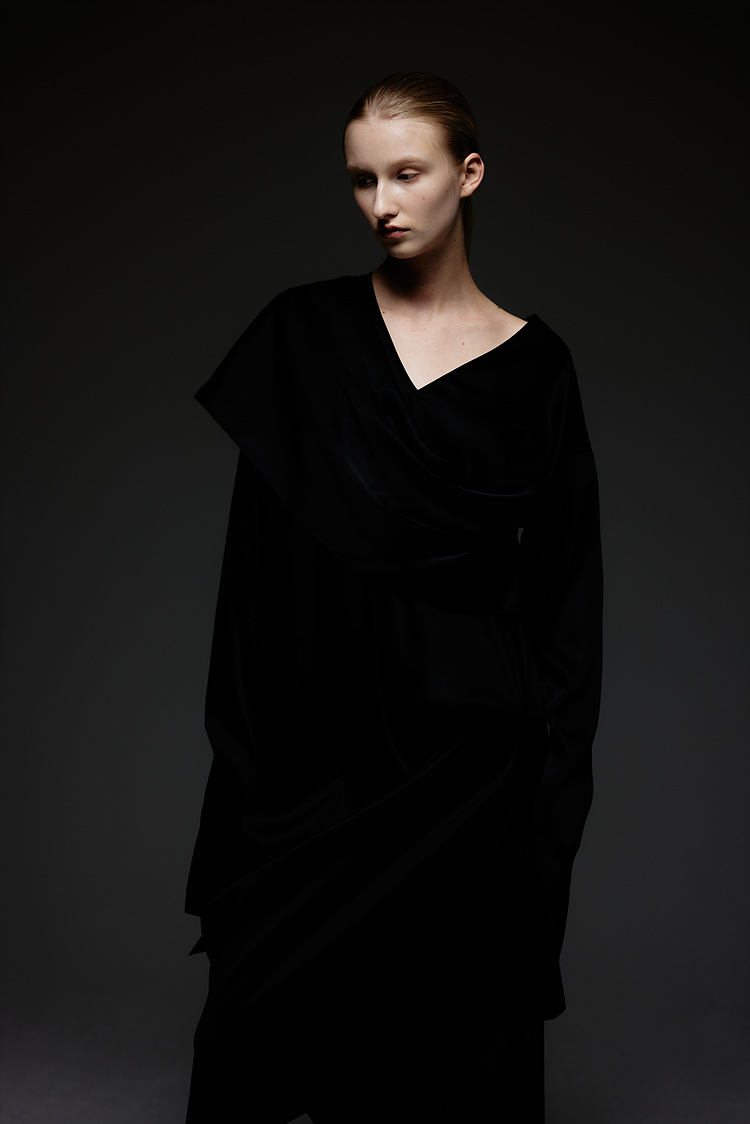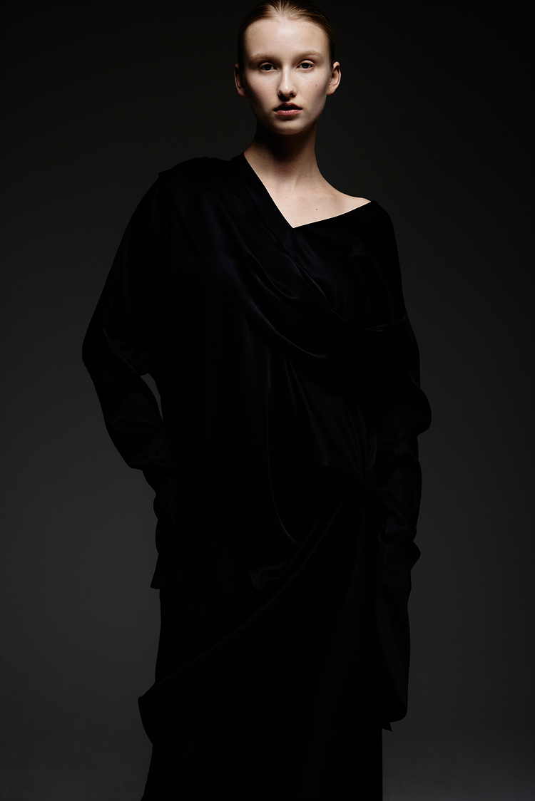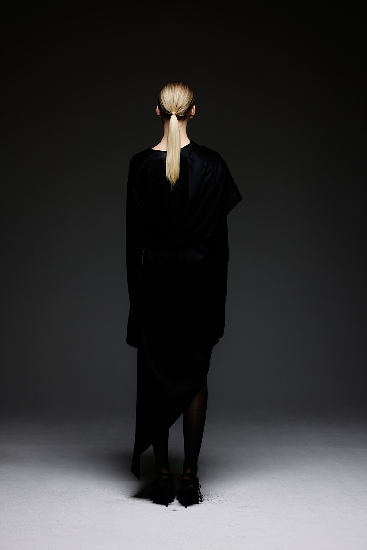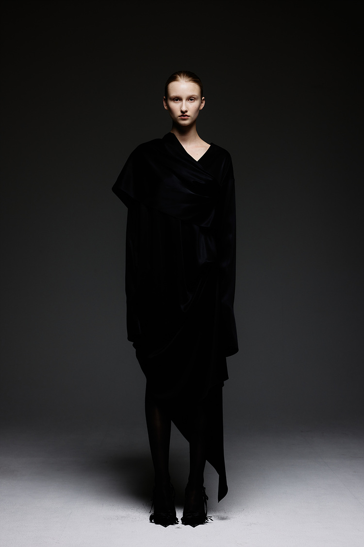 ONE-SHOULDER CAPE ASYMMETRIC DRESS