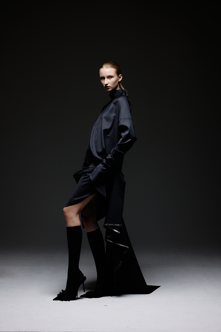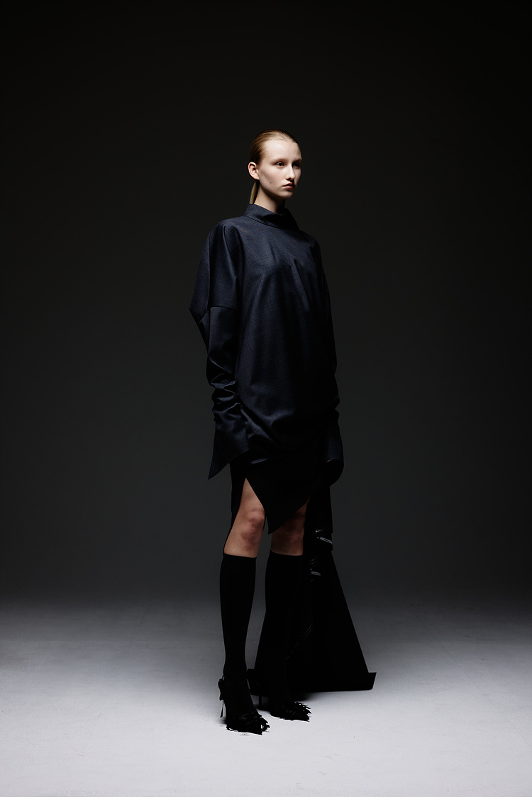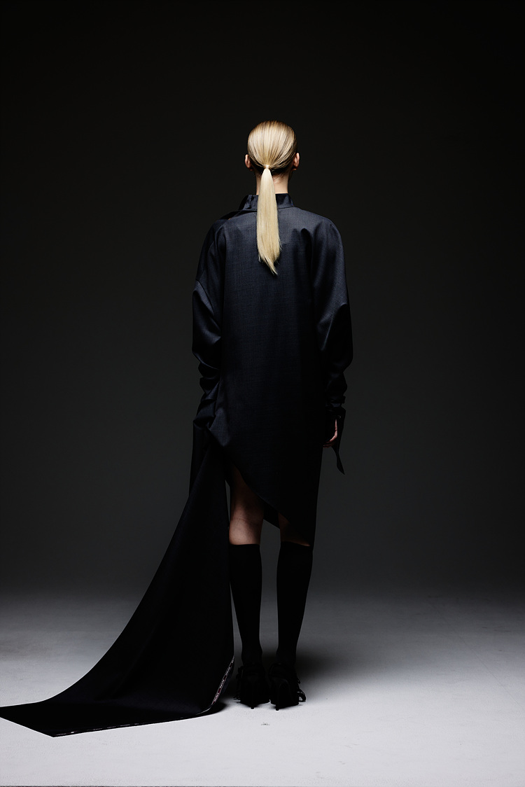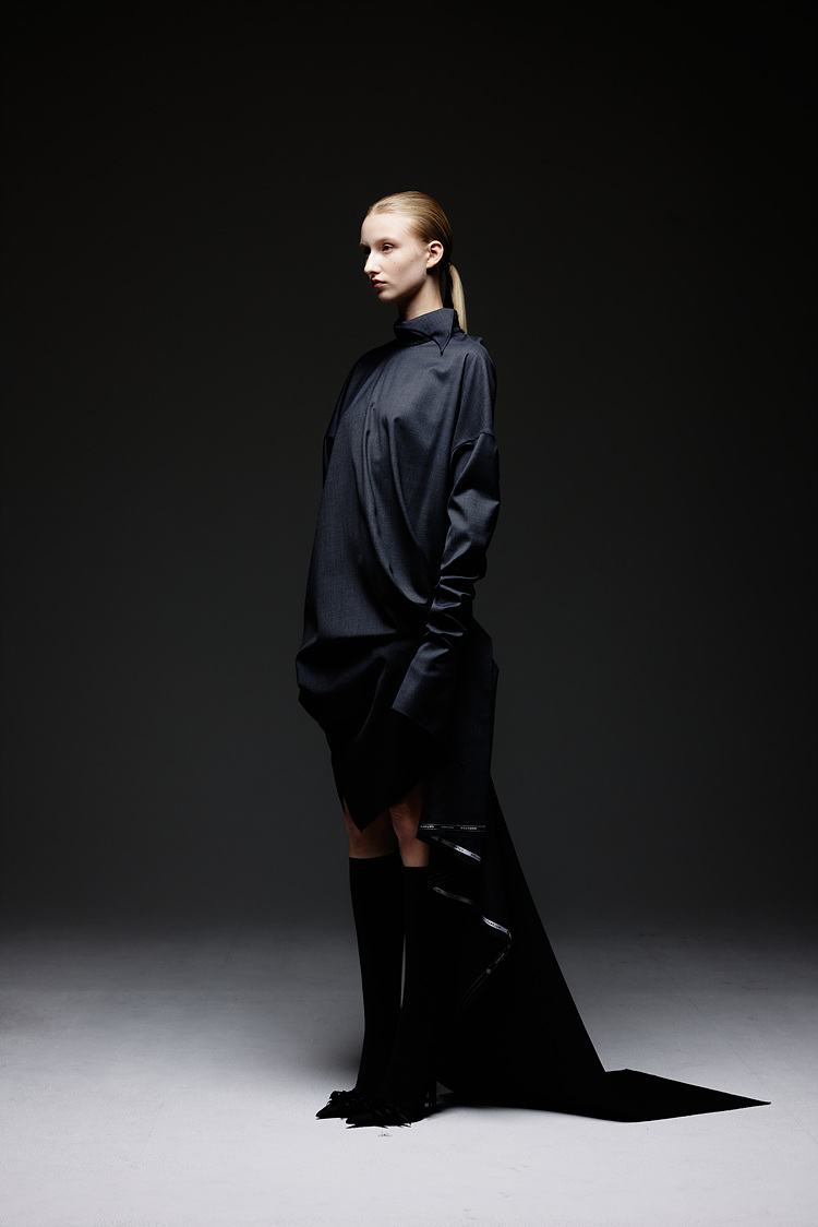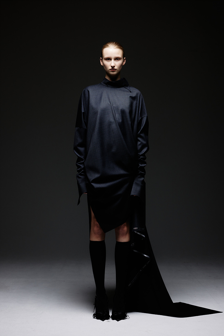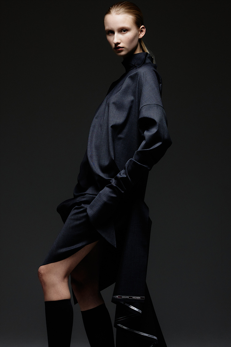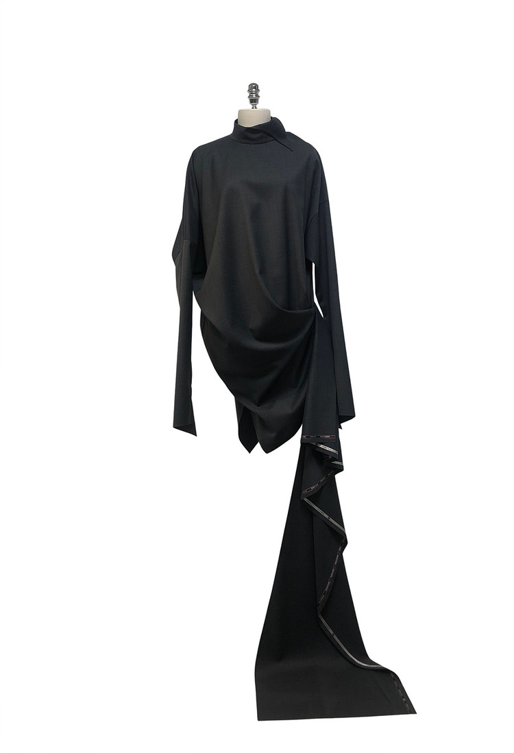 SIDE FRILL WOOL DRESS