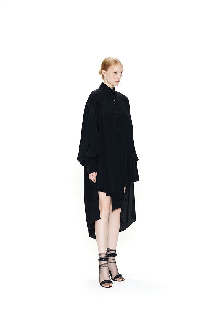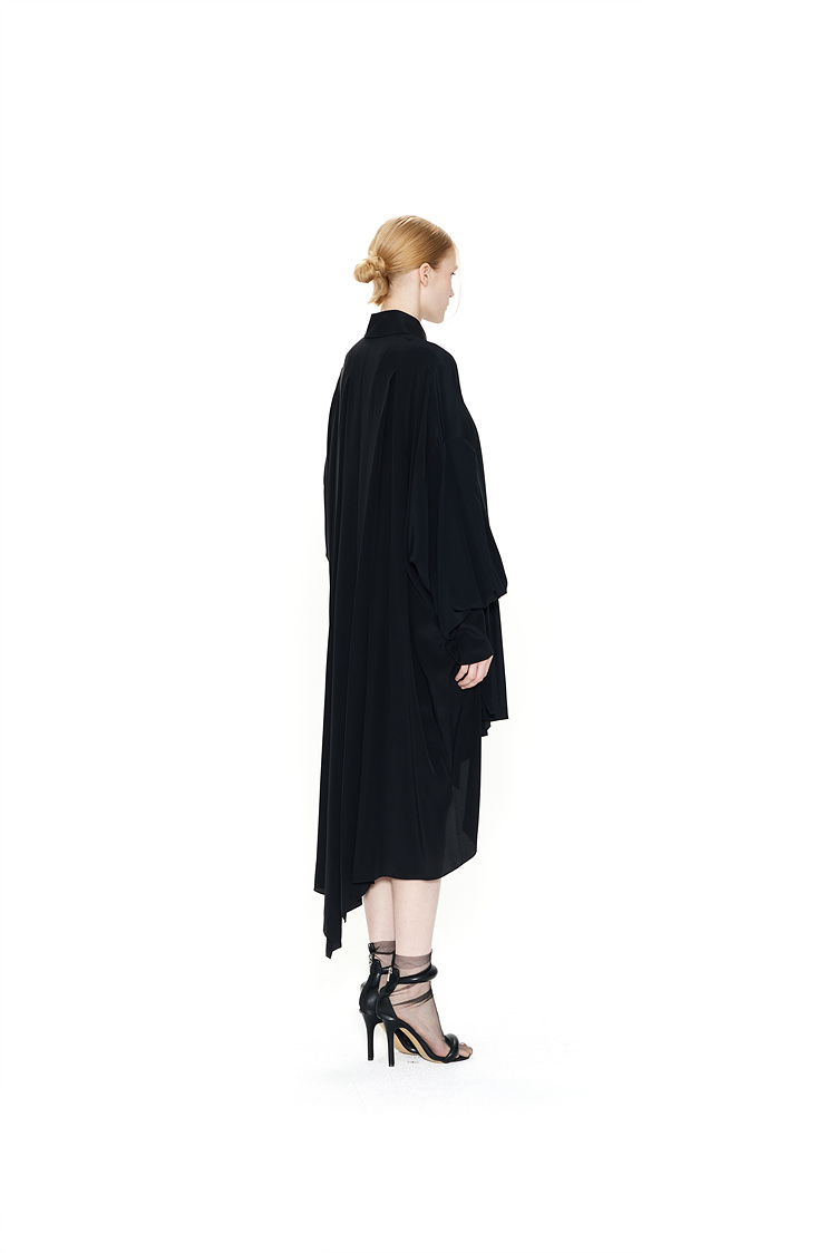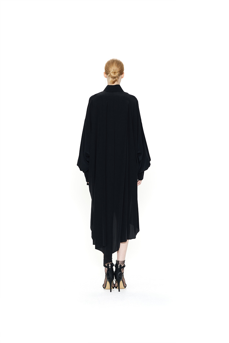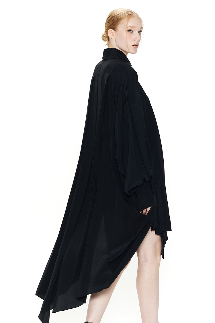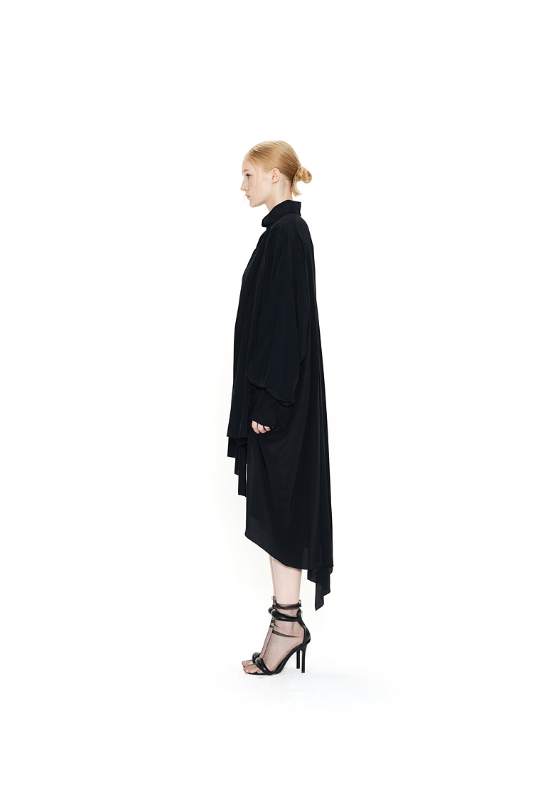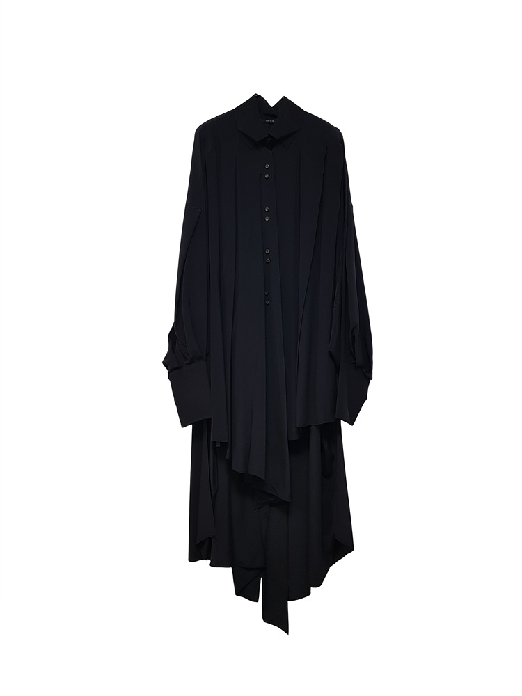 IRREGULAR PLEATS SILK SHIRTS DRESS