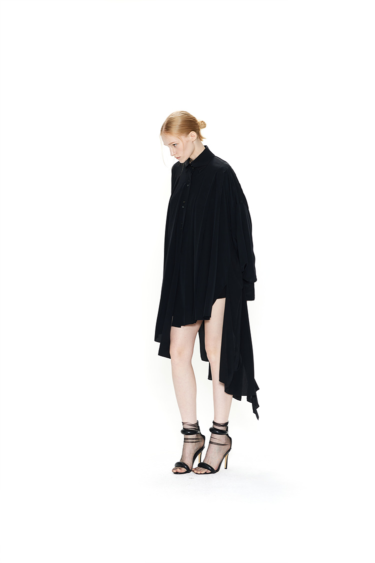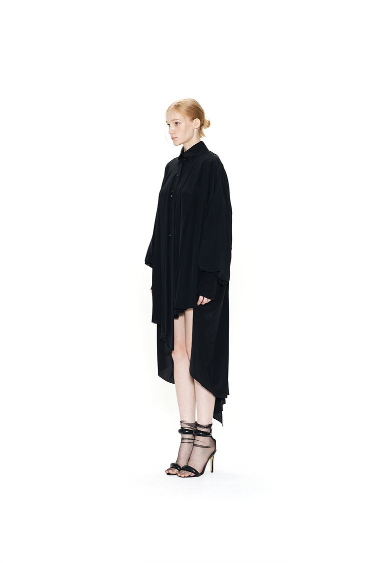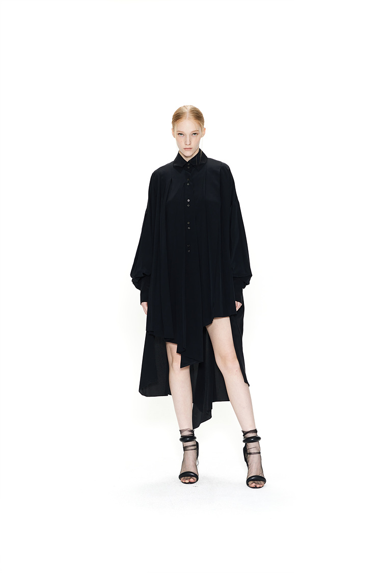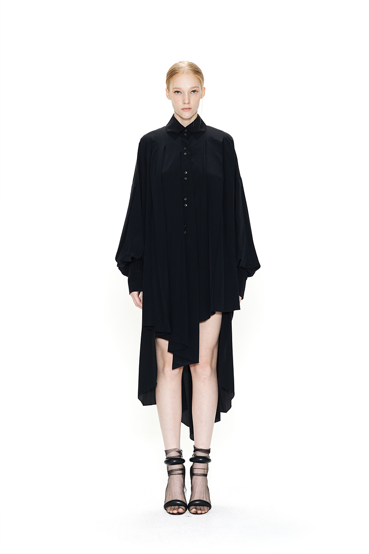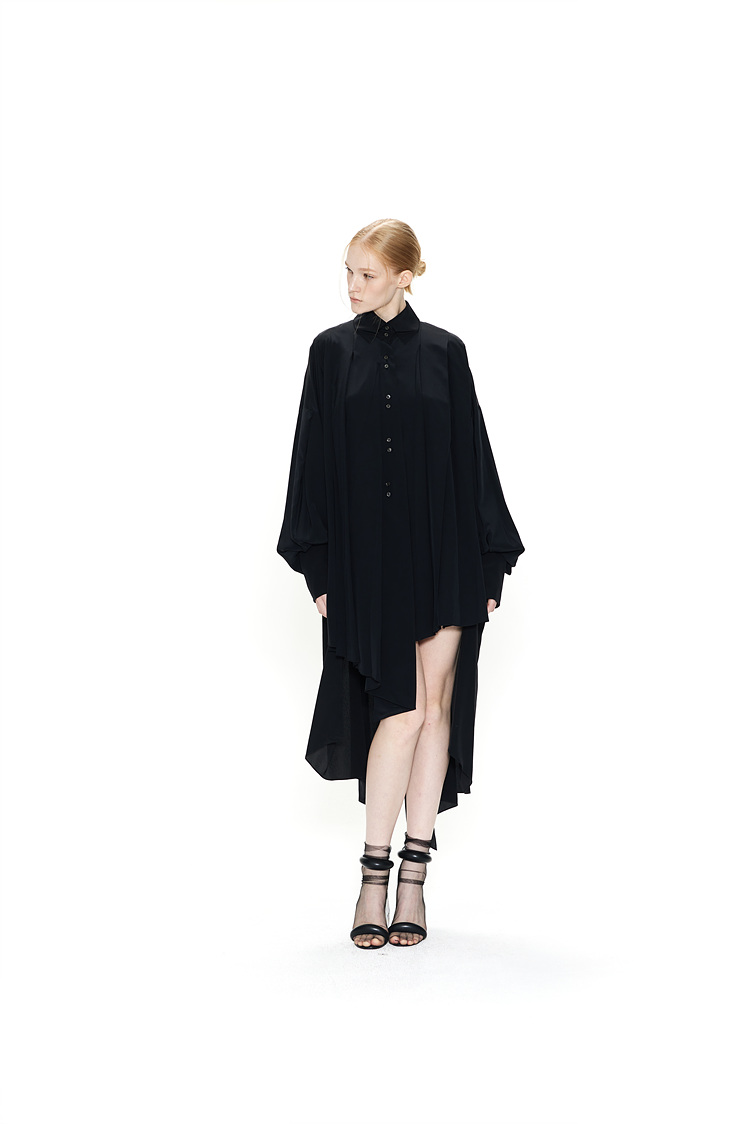 IRREGULAR PLEATS SILK SHIRTS DRESS