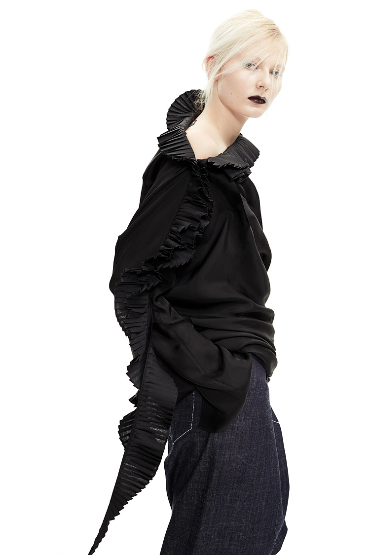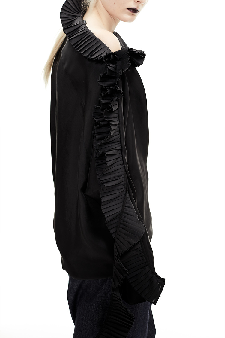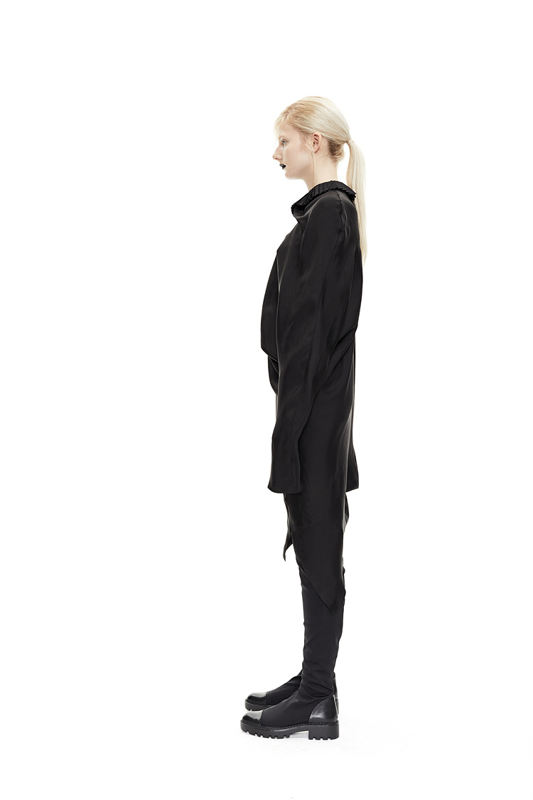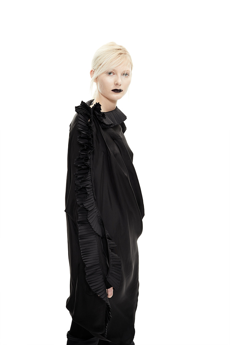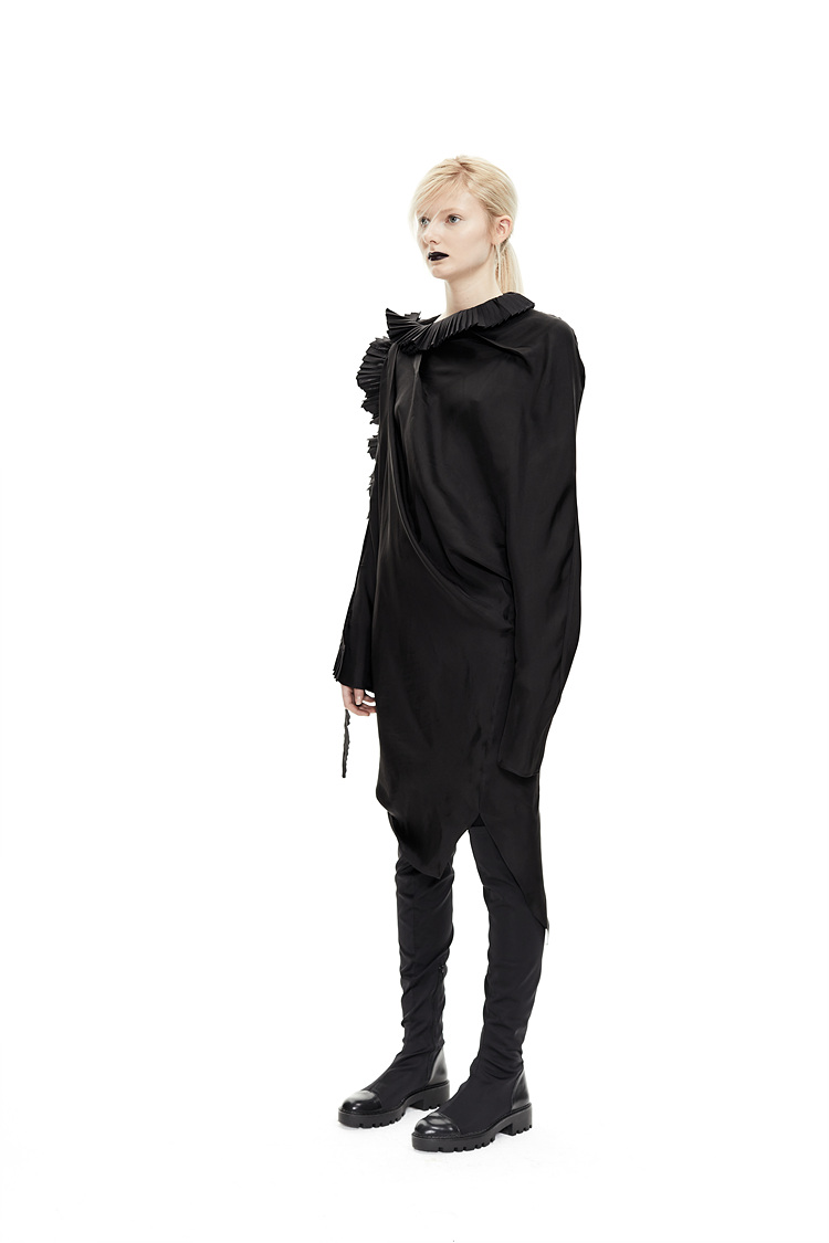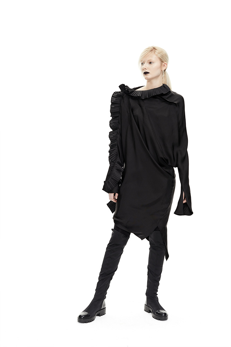 [SAMPLE] PLEATS DETAIL UNBLANCE DRESS_BLACK