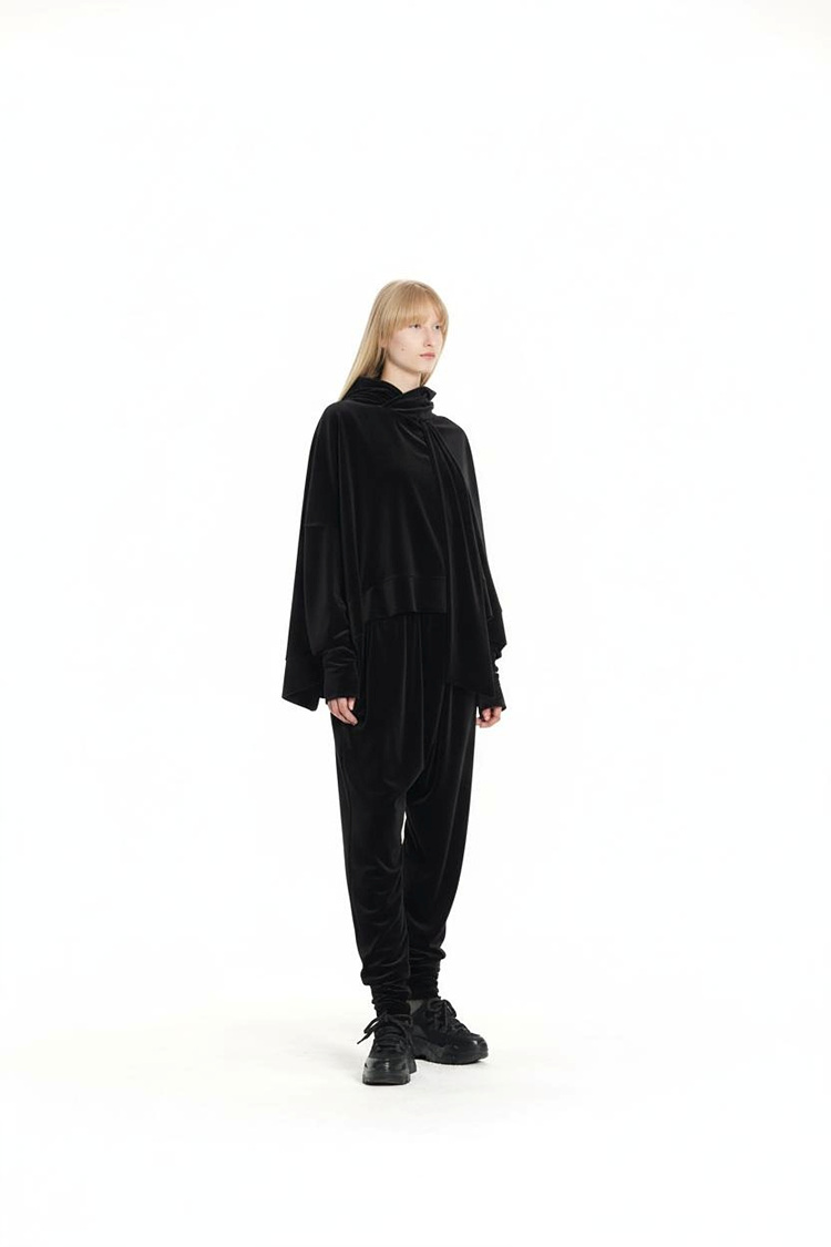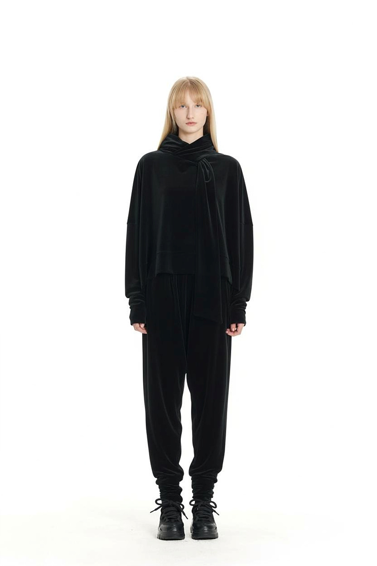 GDeL_VELVET WIDE TIE HOODIE_BLACK 복제