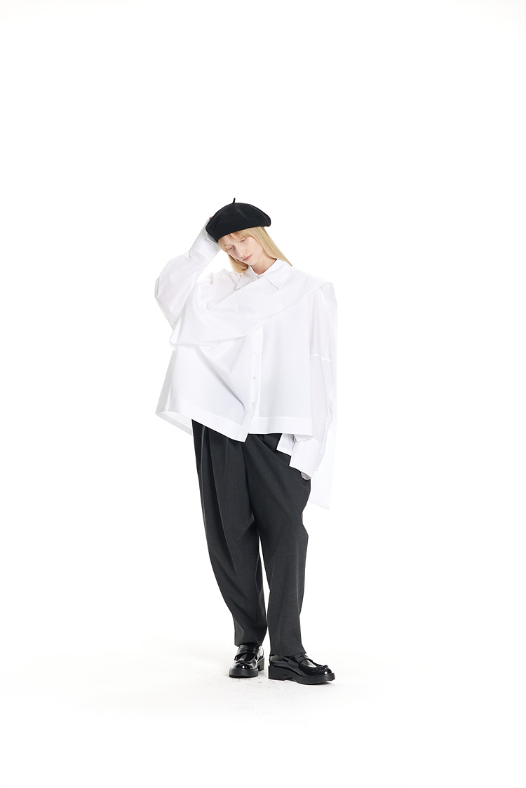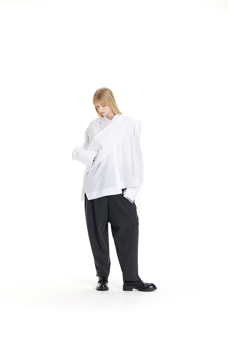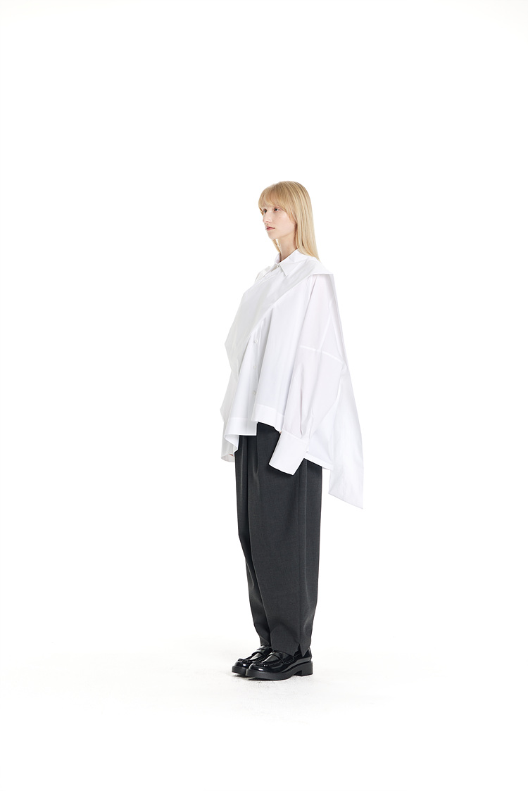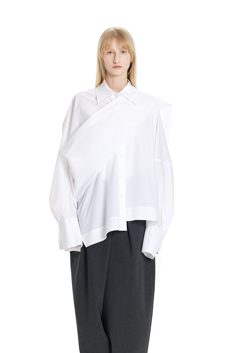 GDeL_SCARF-MATCHED COTTON WIDE SHIRT_WHITE 복제
