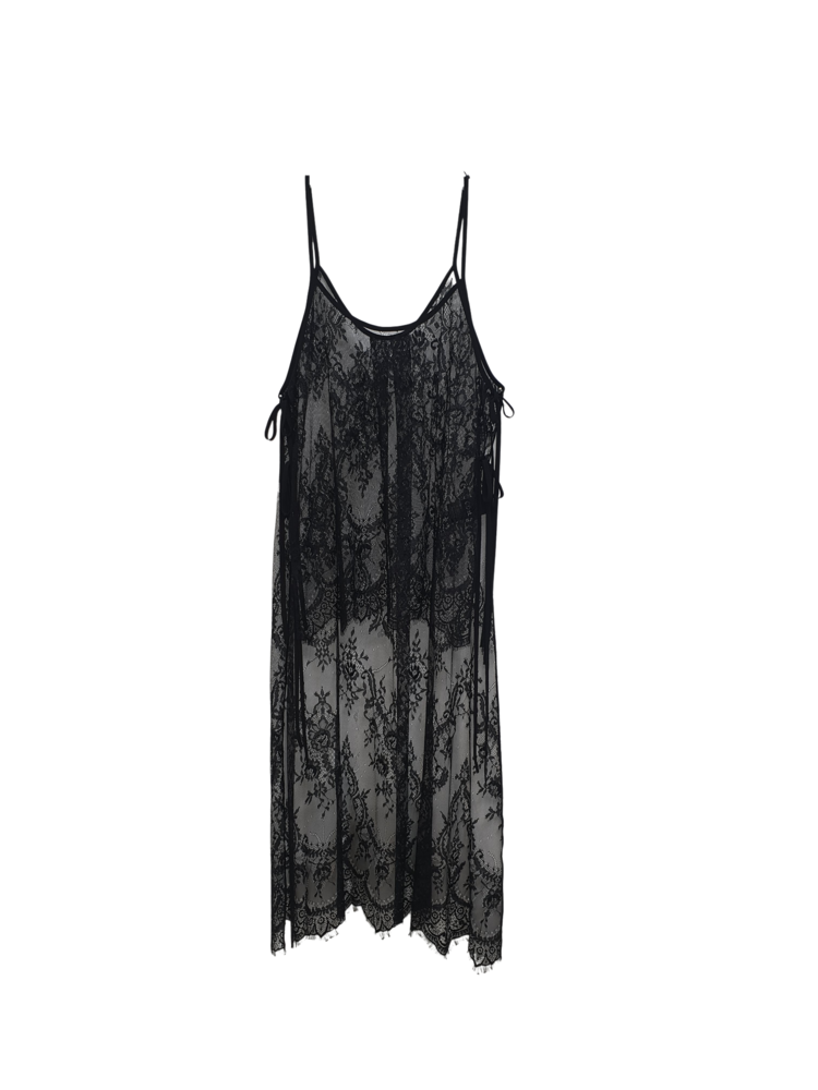 [LIMITED UPCYCLE] LACE LAYERD SLIP DRESS_BLACK 복제