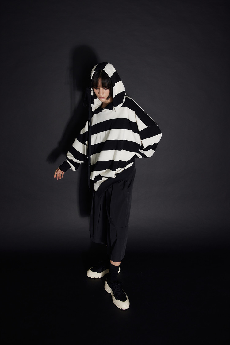 GDeL_STRIPE ASYMMETRIC HOODIE
