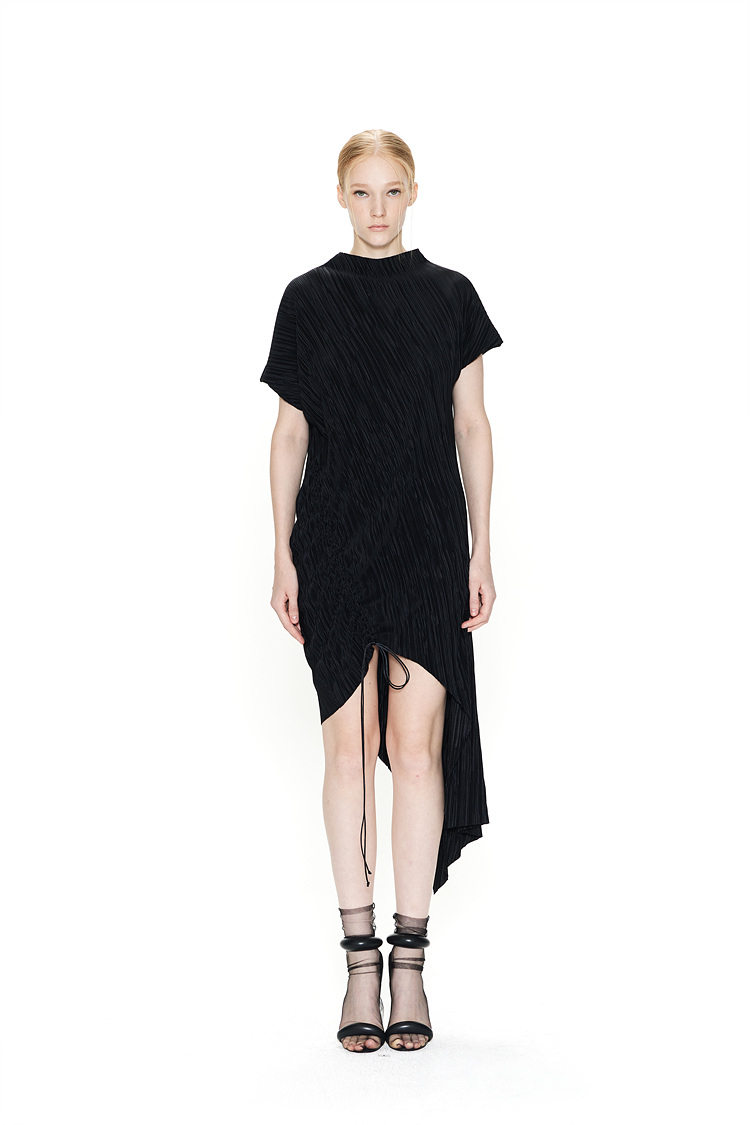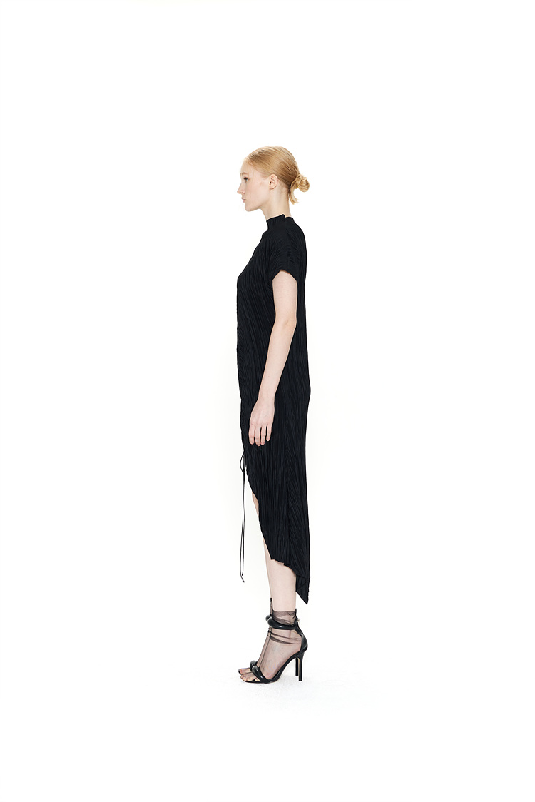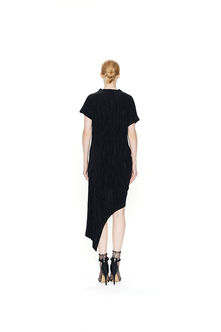 AN ASYMMETRICAL CREASE JERSEY DRESS