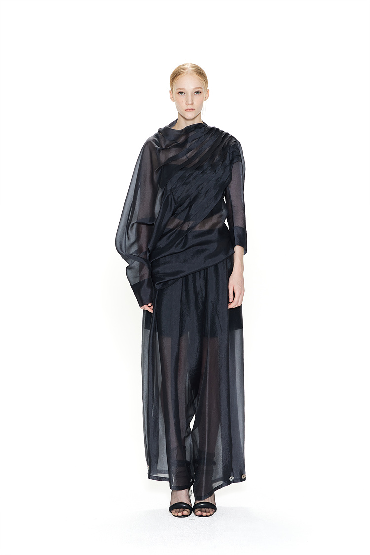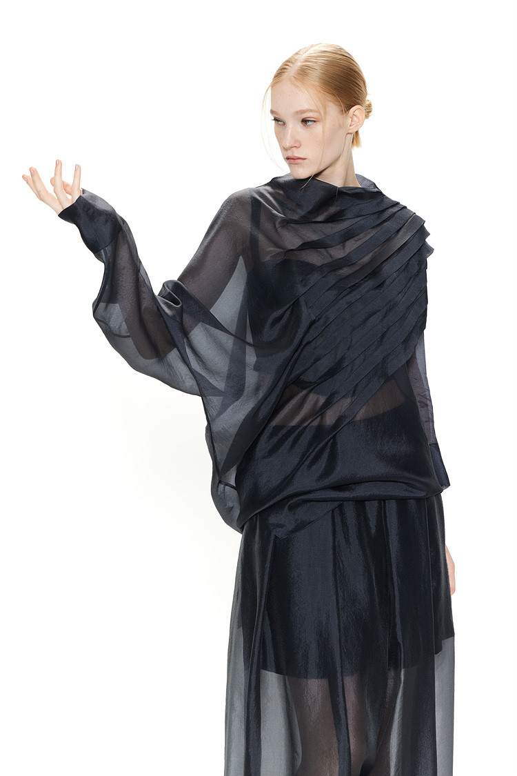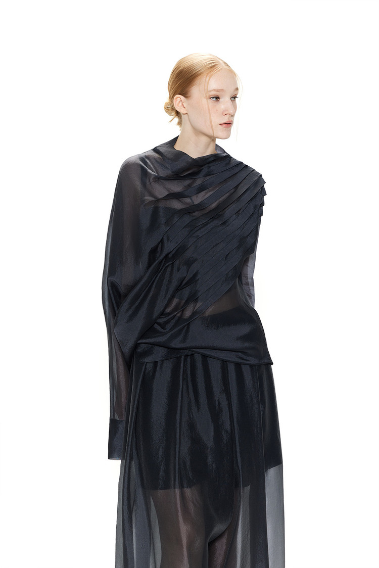 A SHEER BLOUSE WITH PINTUCK DETAILS